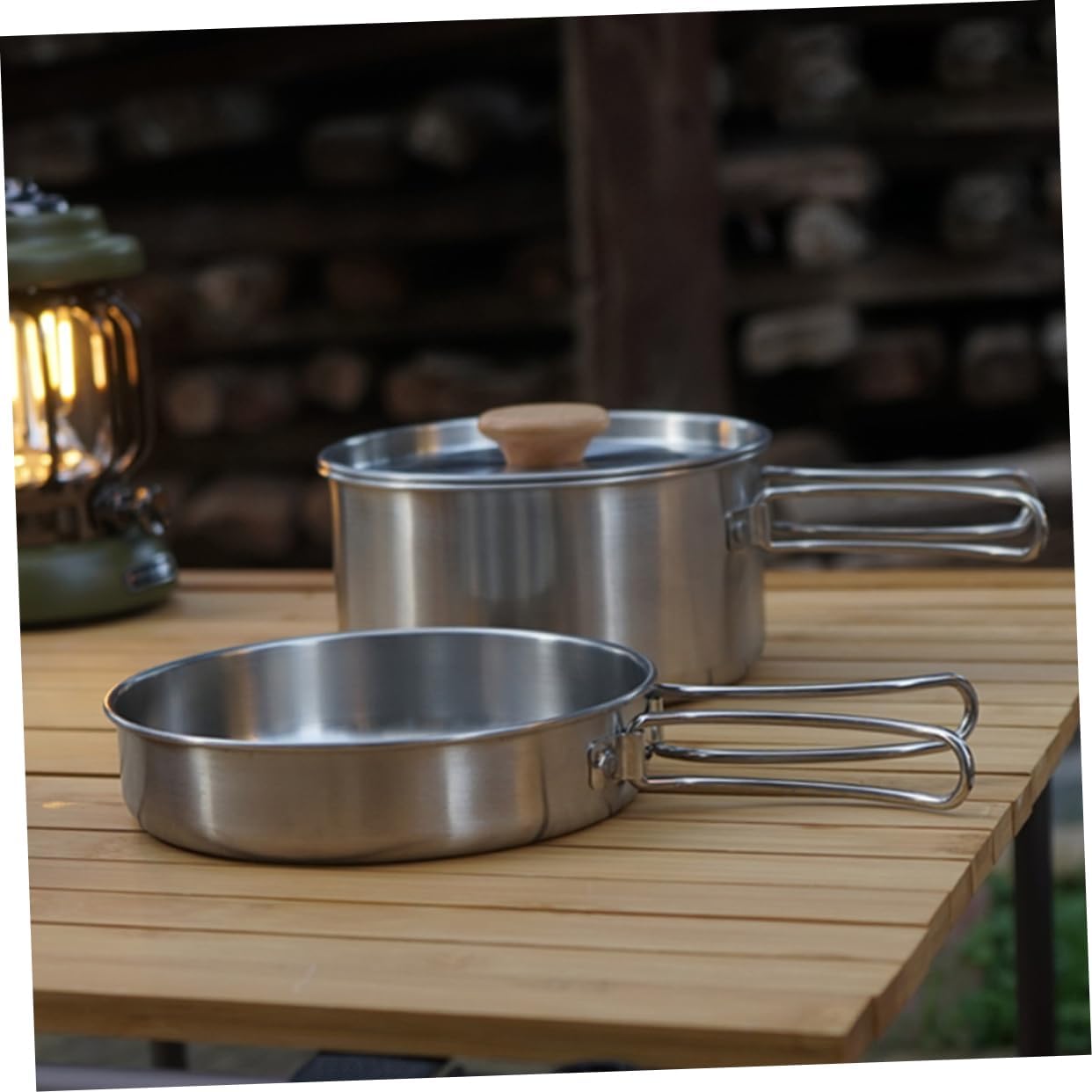 Package Include 1 x Cooking Pan 1 x Cooking Pot with Lid Features -Material:Stainless steel wear-resistant camping pan -Size (pan):15.50X15.50X3.50cm/6.09X6.09X1.38in frying accessory -Size (pot):15.00X15.00X8.00cm/5.89X5.89X3.14in outdoor cooking pot -Color:Silver cooking pot -You can use it to make omelets, steaks, pancakes, omelets, or some desserts. The pan can bring you much convenience folding handle cooking pot. -It is large enough to cook a variety of foods and share them with your friends reusable cooking pot. -With this pan, you can share delicious food with friends and family during meals camping pot. -The product is made of stainless steel material plus great processes, and sturdy wear-resistant frying pan. -This Cooking Utensil is the cooking tool for home and professional use stainless steel cooking pot.Goods Descriptioncooking pot The non-slip comfort grip is designed for manipulating ease during cooking.outdoor frying pan This Cooking Utensil can make four kinds of delicious dishes, fried steak, pancake, Bacon and so on.stainless steel camping pot housewarming present for friends and family.camping pot The Cooking Utensil set can be your choice.daily use frying pan Make breakfast easier and quicker