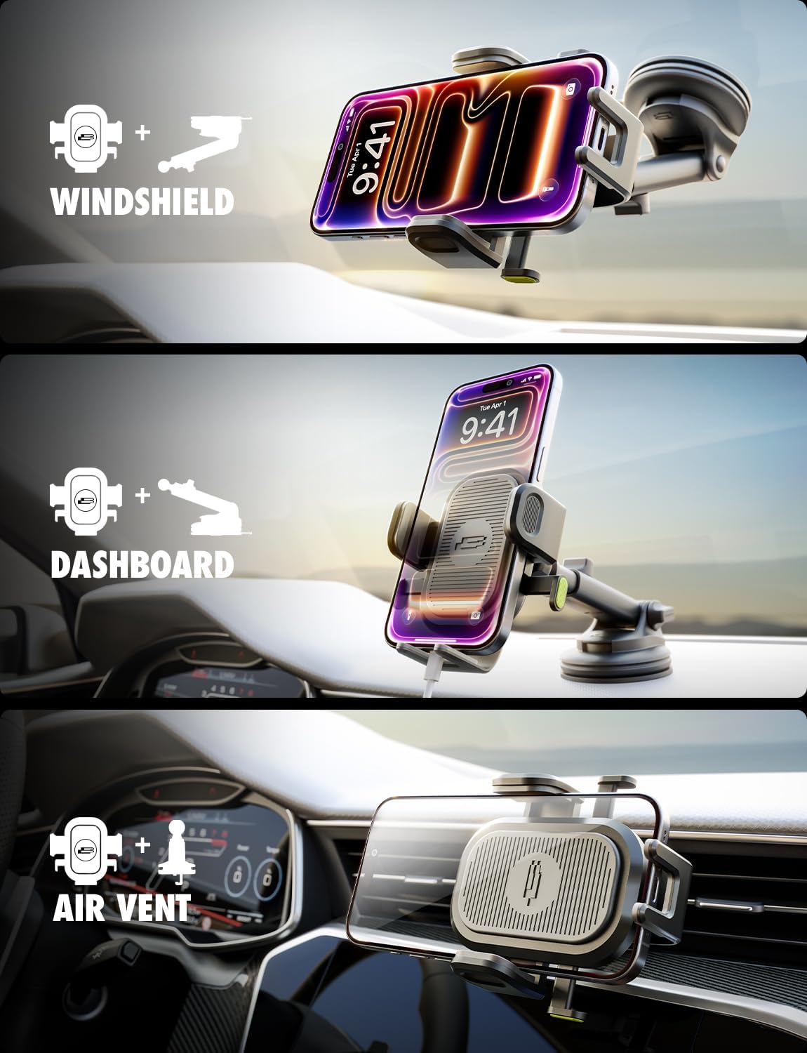 | BuiltIn Media | 3M Adhesive Dashboard Pad, Bracketron OneClick Car Phone Mount, Extend Base with TemperBond Suction Cup, Instruction Manual |