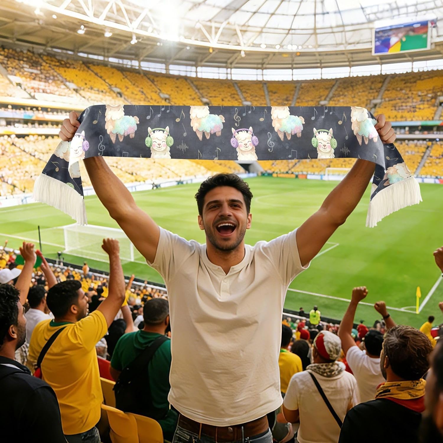 Whether you are cheering from the stands or watching from the sidelines, this sports fan scarf is your go-to companion for every game day. Crafted from 100% polyester quick-dry fabric, it keeps you cool and comfortable no matter how heated the action gets.The soft brushed finish feels smooth against your skin, making it easy to wipe away sweat during those exciting moments. The generous 70 x 7 inch length gives you plenty of room to wave it high, wrap it around your shoulders, or hold it up proudly as a cheering banner.Vibrant printing across a 60 x 7 inch area ensures your message or design stands out in the crowd. Colors are bold, sharp, and resistant to fading, so your scarf looks just as striking after multiple washes as it did on day one.Fringe ends on both sides add a classic fan touch, while the black and white color options make it easy to match with a wide range of printed designs. This soccer scarf is a crowd favorite at matches, fan events, and sports gatherings of all kinds.Looking for a thoughtful gift for a sports fan in your life? This scarf makes a wonderful present for birthdays, holidays, and seasonal celebrations. It is also a choice for group events, fan clubs, and organized cheering squads.Care is simple: machine wash gently in water below 40 degrees C, hand wash if preferred, and avoid bleach or dry cleaning. Ready to bring the energy every game day.