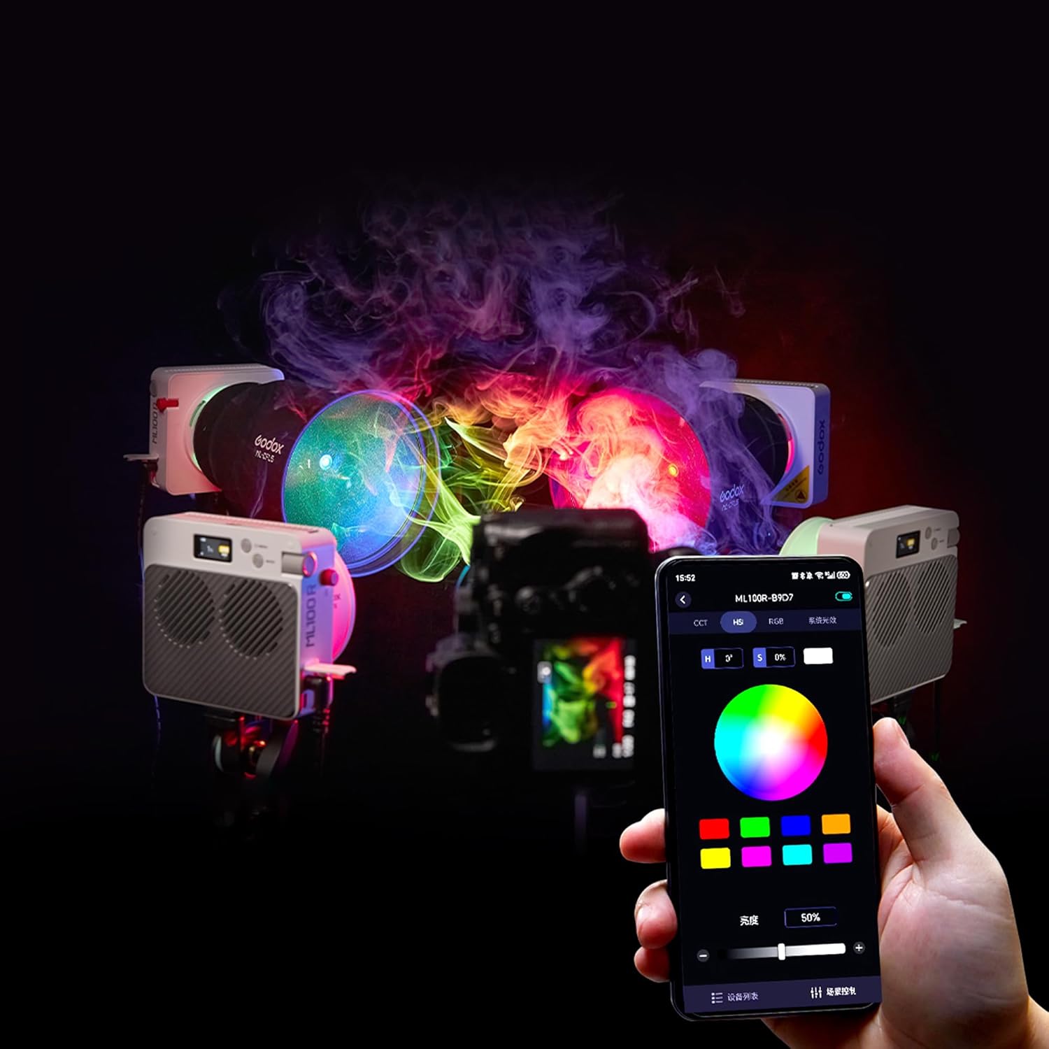 Less Thanh2Greater ThanGodox ML100R RGB Portable LED Light – Compact, Powerful, and Creative Lighting for Every ScenarioLess Than/h2Greater ThanThe Godox ML100R RGB Portable LED Light is a game-changer for content creators, vloggers, filmmakers, and photographers seeking professional-grade lighting in a compact, portable form. Designed with an elegant white body, this lightweight yet powerful 110W LED fixture offers full RGB color control, bi-color flexibility, and high-precision dimming, making it an essential addition to any creative toolkit.Less Than/pGreater ThanLess Thanh3Greater ThanExceptional Illumination & Color AccuracyLess Than/h3Greater ThanDespite its compact size, the ML100R delivers impressive brightness, producing 2360 lux at 3.3' (5600K), and an incredible 12,900 lux with the included 15° lens reflector. The extended CCT range from 1800K to 10,000K allows for precise color temperature adjustments, seamlessly transitioning from warm tungsten tones to crisp daylight. With a CRI of 95 and TLCI of 95, the ML100R ensures accurate color reproduction, making it ideal for video production, live streaming, photography, and cinematic projects.Less Than/pGreater ThanLess Thanh3Greater ThanFull RGB Spectrum & Advanced ControlLess Than/h3Greater ThanThe ML100R is not just a bi-color LED—it offers full RGB output, enabling you to explore a vast range of vibrant colors to enhance your creative expression. Whether you're crafting a moody cinem