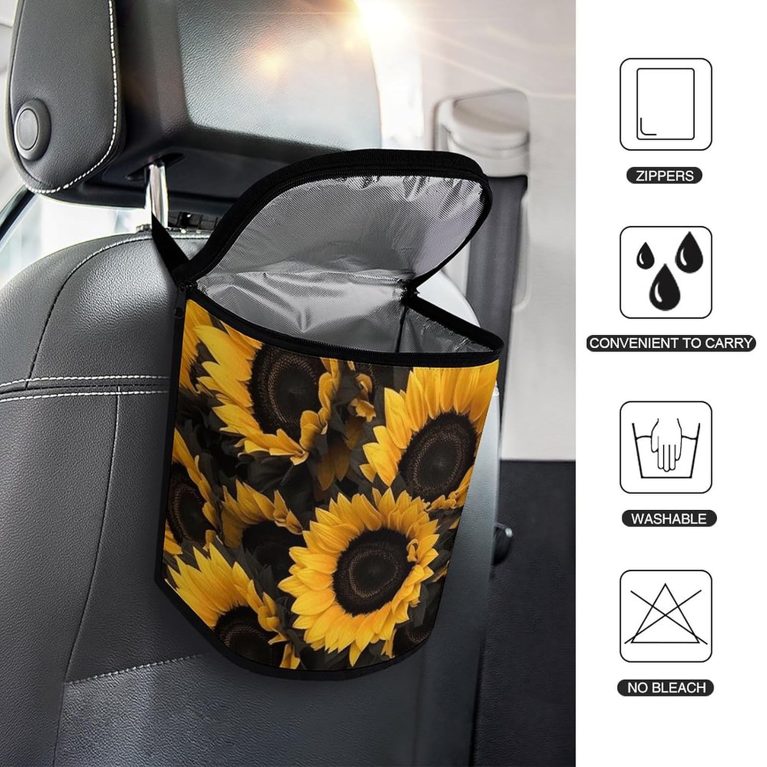 This stylish garbage bag storage bag features a built-in waterproof and leak-proof lining,effectively protecting the trash can and your car from beverage and grease stainsThe appearance design of car trash cans with lids is becoming more and more beautiful and fashionable. It is not only practical, but also adds a sense of decoration to the car