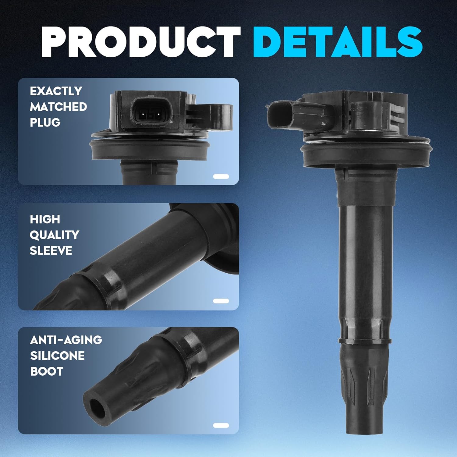 Magorfas Ignition Coils--No more stuttering, and quicker start off!100000km of service life0.5s quick ignition30% energy savingCompatible with Ford:Fit for Edge 2007-2011 3.5LFit for Flex 2009-2011 3.5LFit for Fusion 2010-2012 3.5LFit for Taurus 2008-2012 3.5LFit for Taurus X 2008-2009 3.5LCompatible with Lincoln:Fit for MKS 2009-2012 3.7LFit for MKT 2010-2011 3.7LFit for MKX 2007-2010 3.5LFit for MKZ 2007-2012 3.5LCompatible with Mercury Sable 2008-2009 3.5LPackage Includes:6 * Black Ignition Coils6 * Iridium Spark PlugsReplaces for:UF553, C1595, C1595-6, C1595VC, 7T4Z-12029-E, CY01-18-100A, UF-553, UF-595, 5C1652, E1053, E1095, 52-1888, IC633, 610-00119, 7T4Z12029E, 375EE, HPUF553, COP4, 6736013, DG520, UF553X, GN10237, 48856, 1788498, 5117, 7T4Z-12029-F, 7T4Z-12375-EE, 7T4E12A375EC, 7T4E-12A375-ED, CY01-18-100BAll Magorfas products provide 12-month service.Please check your vehicle model according to the Amazon model list to avoid wrong purchases and returns. Remember to prevent putting the ignition coils in a hot or wet environment.