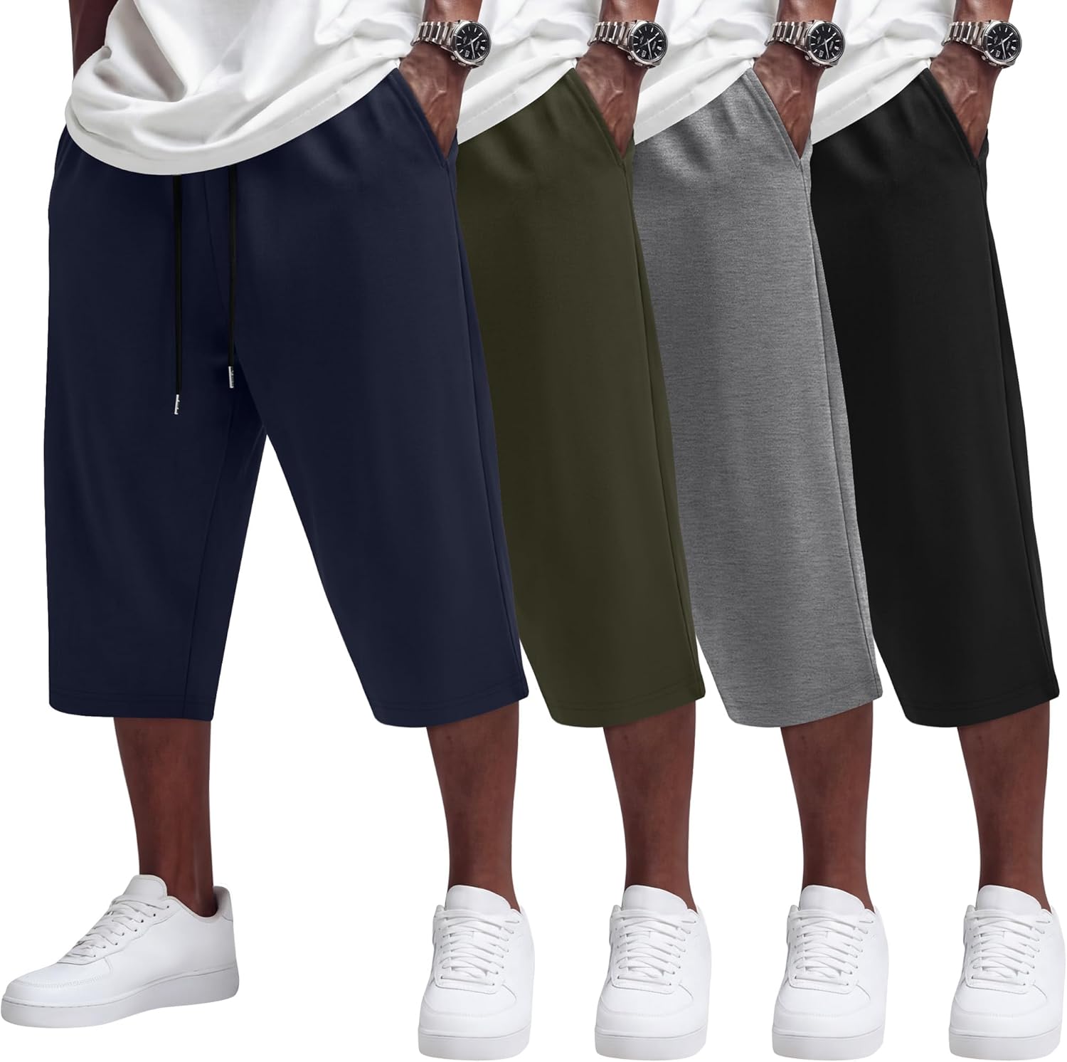Features: These mens casual shorts are a great match for t shirts, tank tops, tight tops, loose jackets, sun shirts, sweatshirts, hoodies, etc. Whether you are in outdoor or indoor activities, it is a choice for your wardrobe and can bring you a good experience. Our mens summer pants are available in different sizes: Large, X-Large, XX-Large, 3X-Large, 4X-Large, 5X-Large. Please refer to the size chart before purchasing and choose the size that suits you. Material: 95% Polyester, 5% Spandex Package includes: 4 X Mens Carpi Pants Notes: Manual measurement, please allow slight errors on size. The color may exist a slight difference due to different screen displays